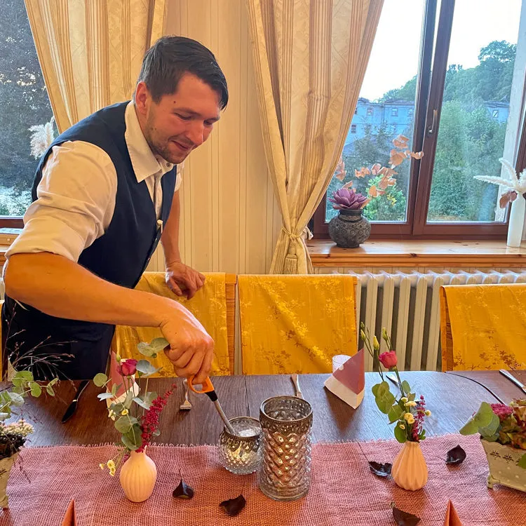 (inkl. Vor- und Nachbereitung und aller Zutaten) - Dinner im festlich dekorierten Goldenen Salon, inkl. Tischgetränke (Wasser, Saft)
