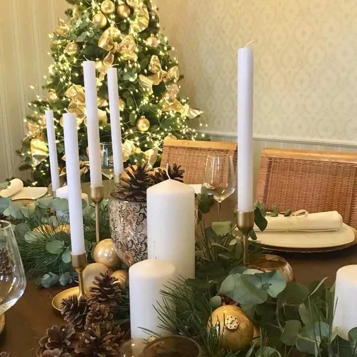 - Stilvoll eingedeckte Kaffeetafel im weihnachtlich geschmückten Salon